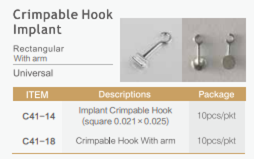 Crimpable Hook with Arm 10lu Paket - Crimpable Hook implant with Arm 10 pcs pack - Power Arm Hook