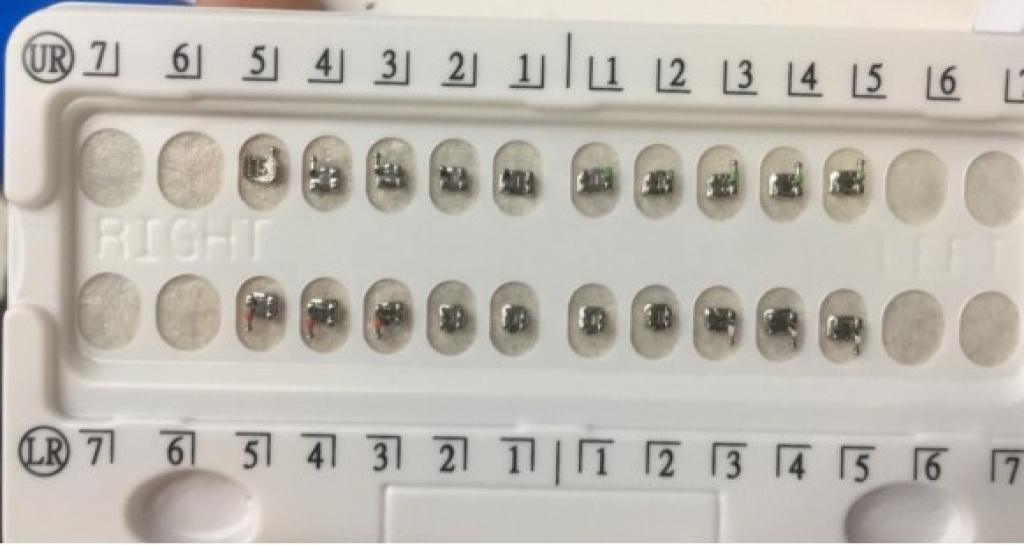 Ortodontik tedavide kullanılan metal mini braketlerdir.