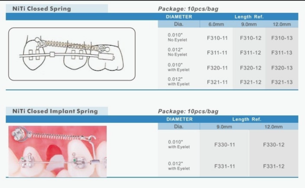 Niti Closed Coil Spring Eyelets- Kapalı Yay 10lu paket - Niti Closed Coil Spring with Eyelets 10pcs pk